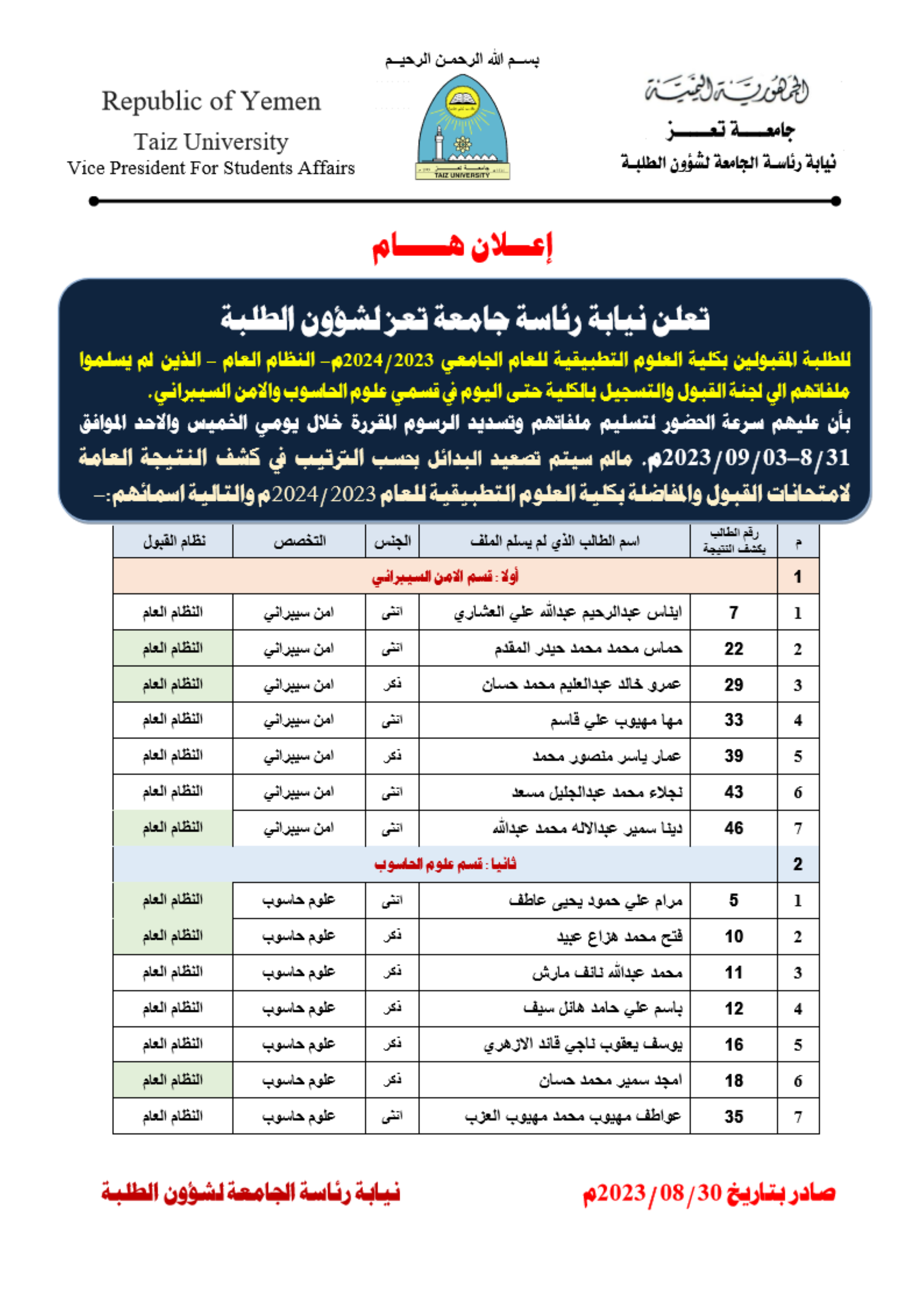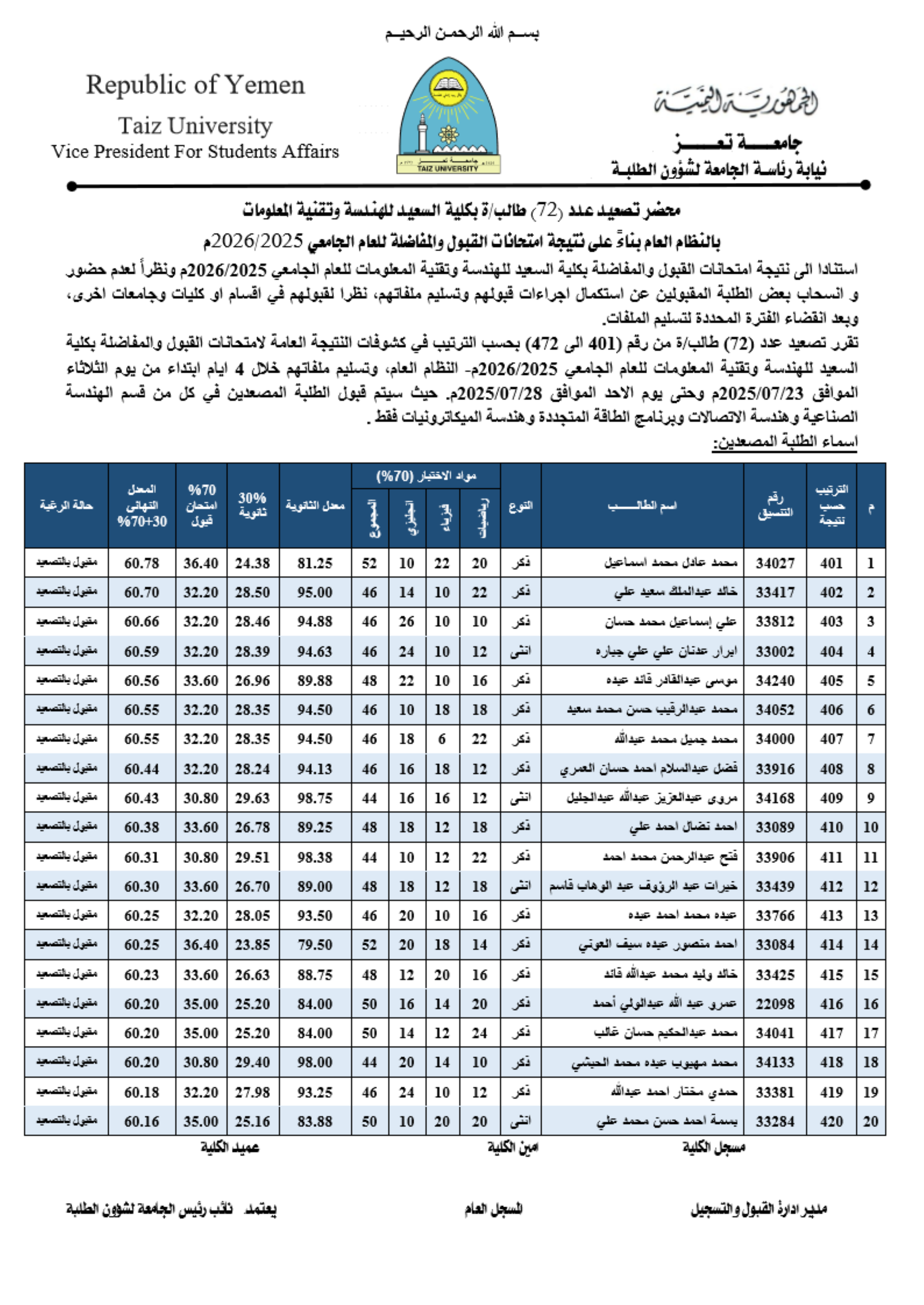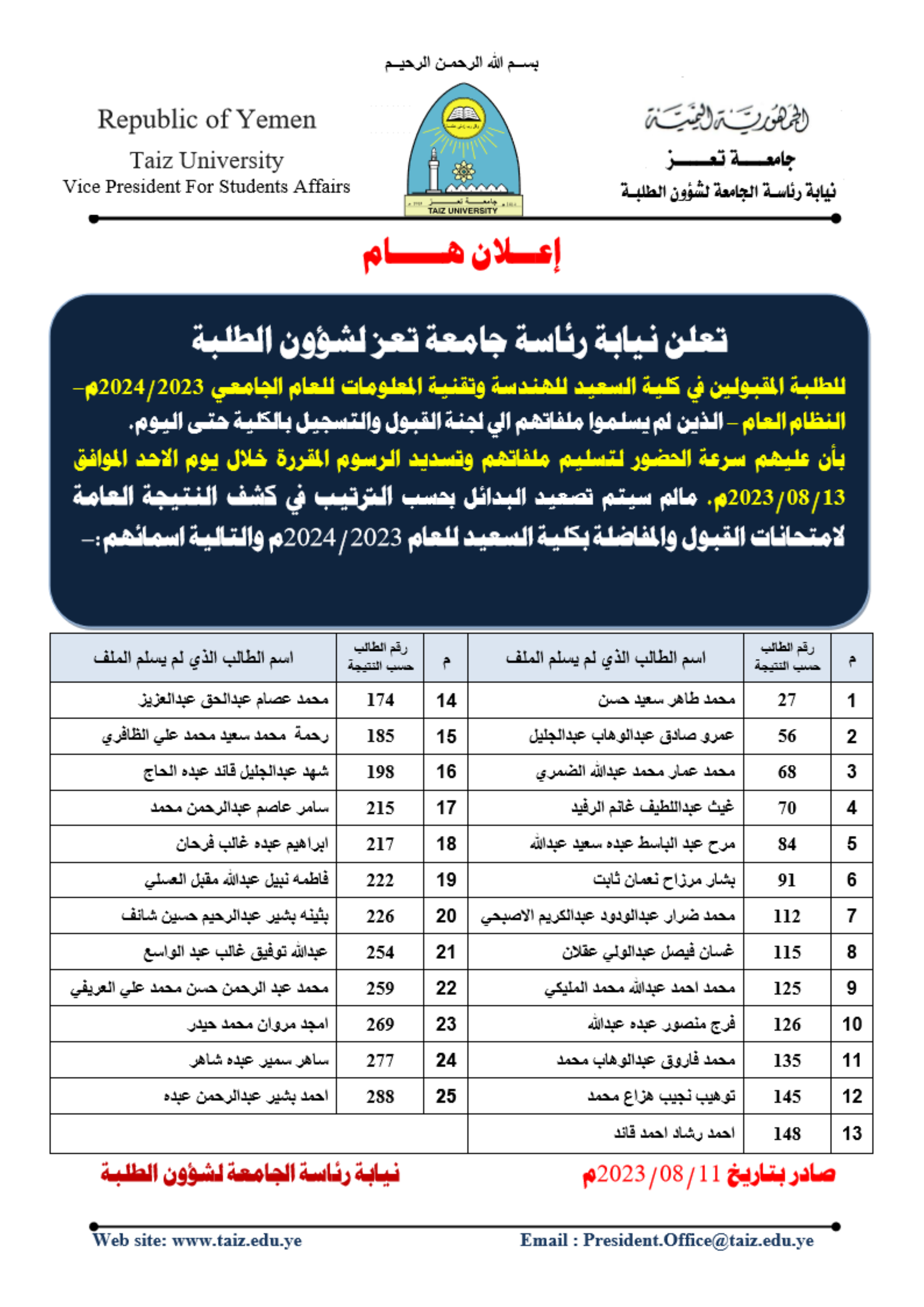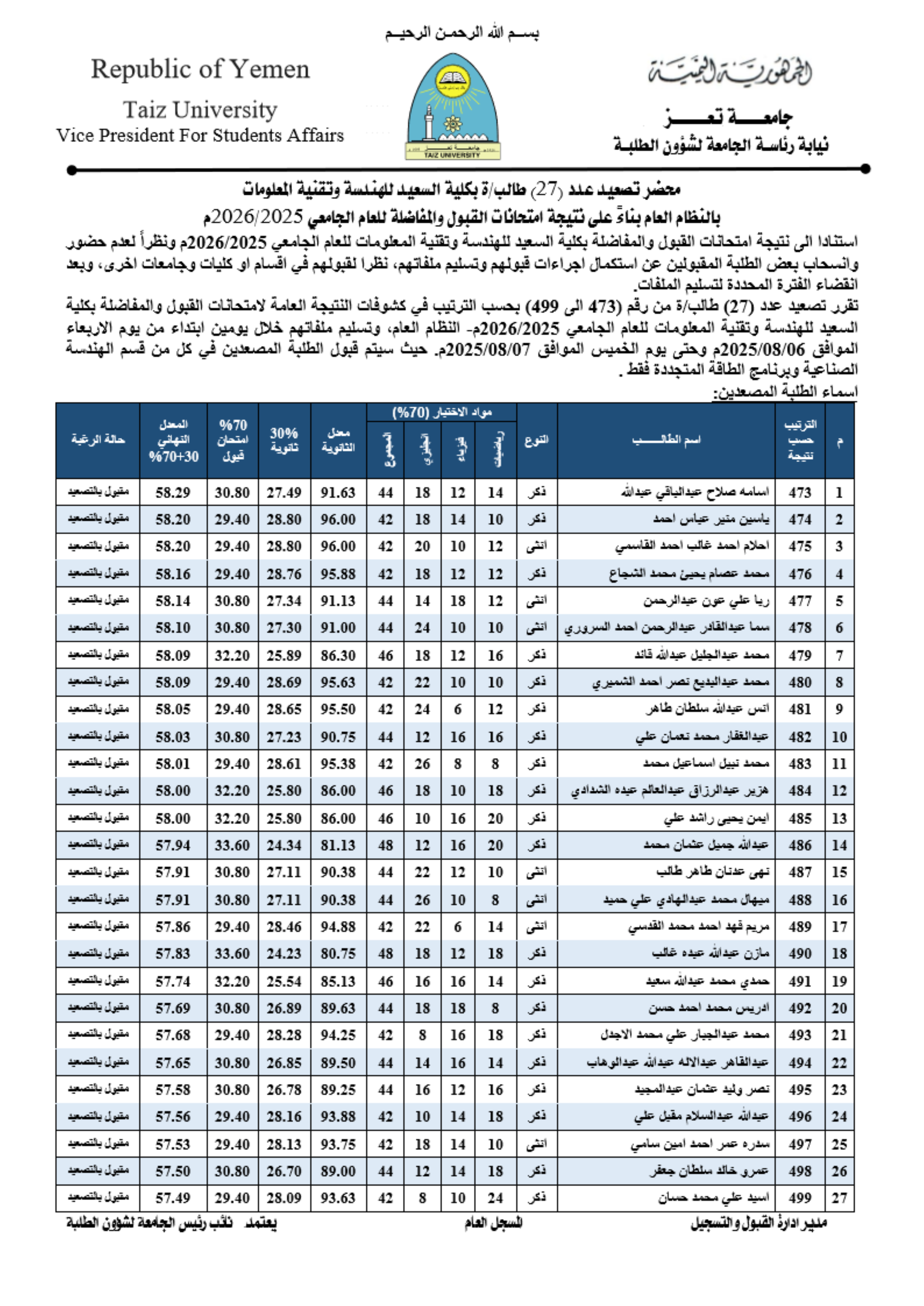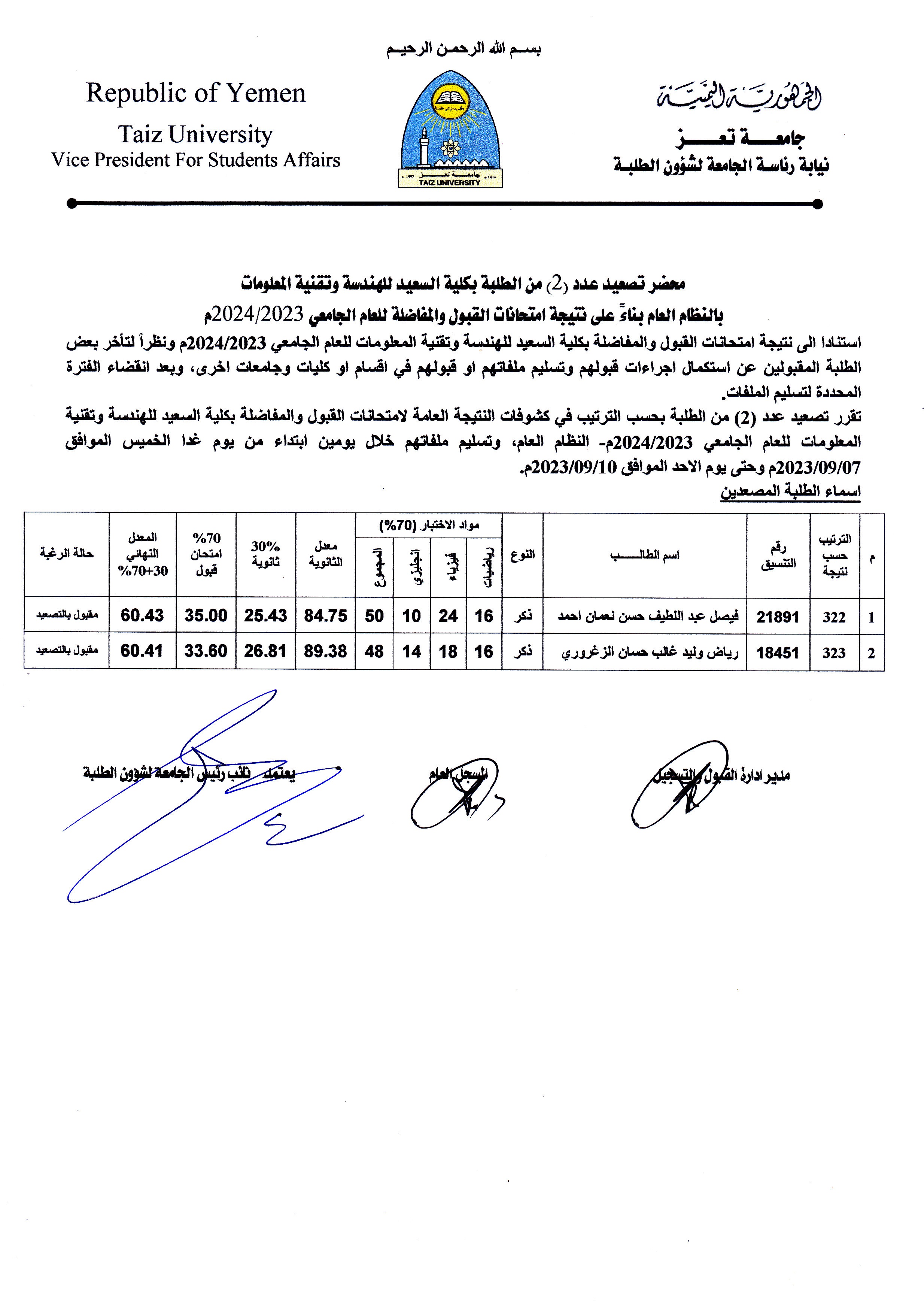 نتائج الطلاب