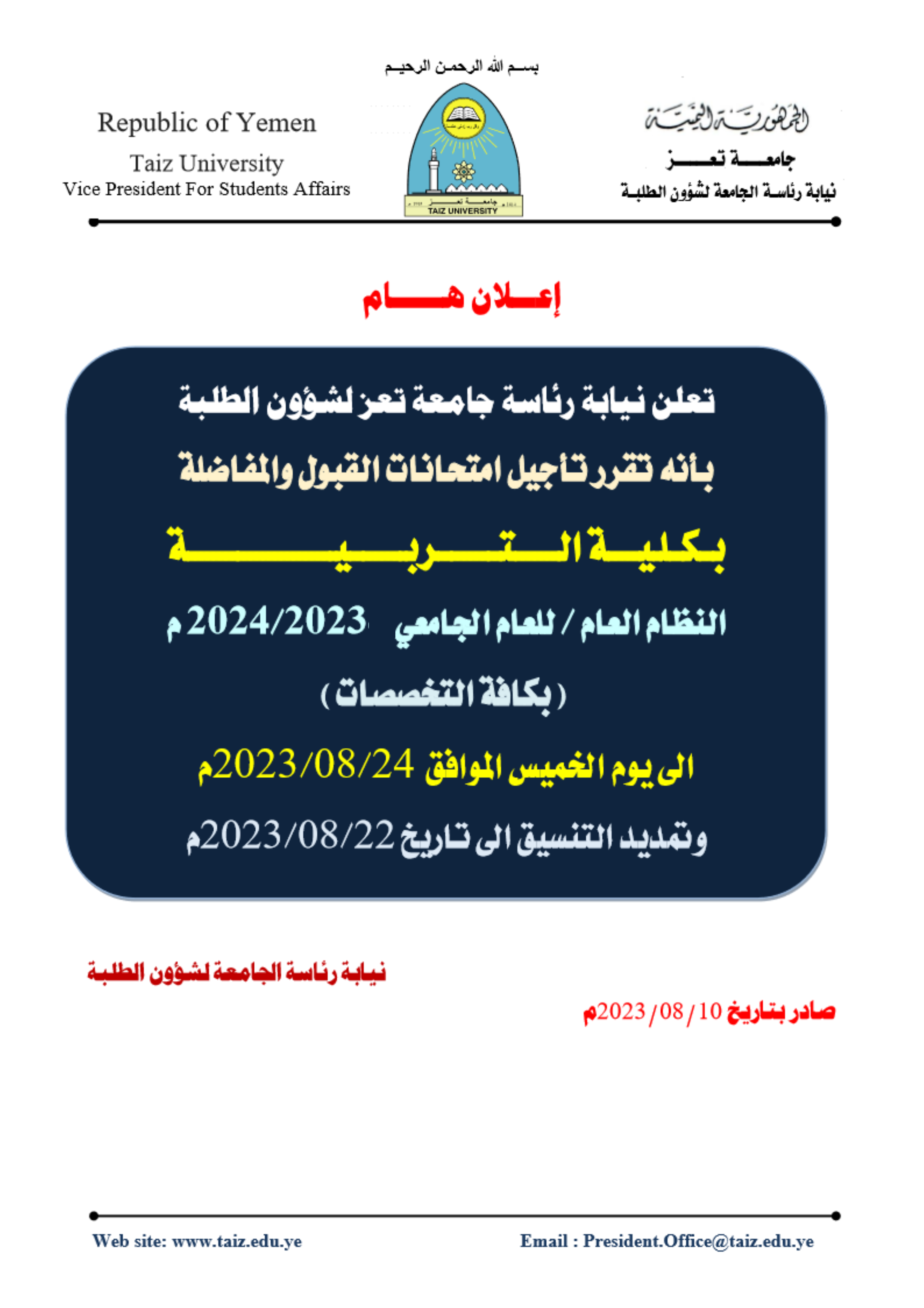 إدارة الخدمات و الأنشطة الطلابية