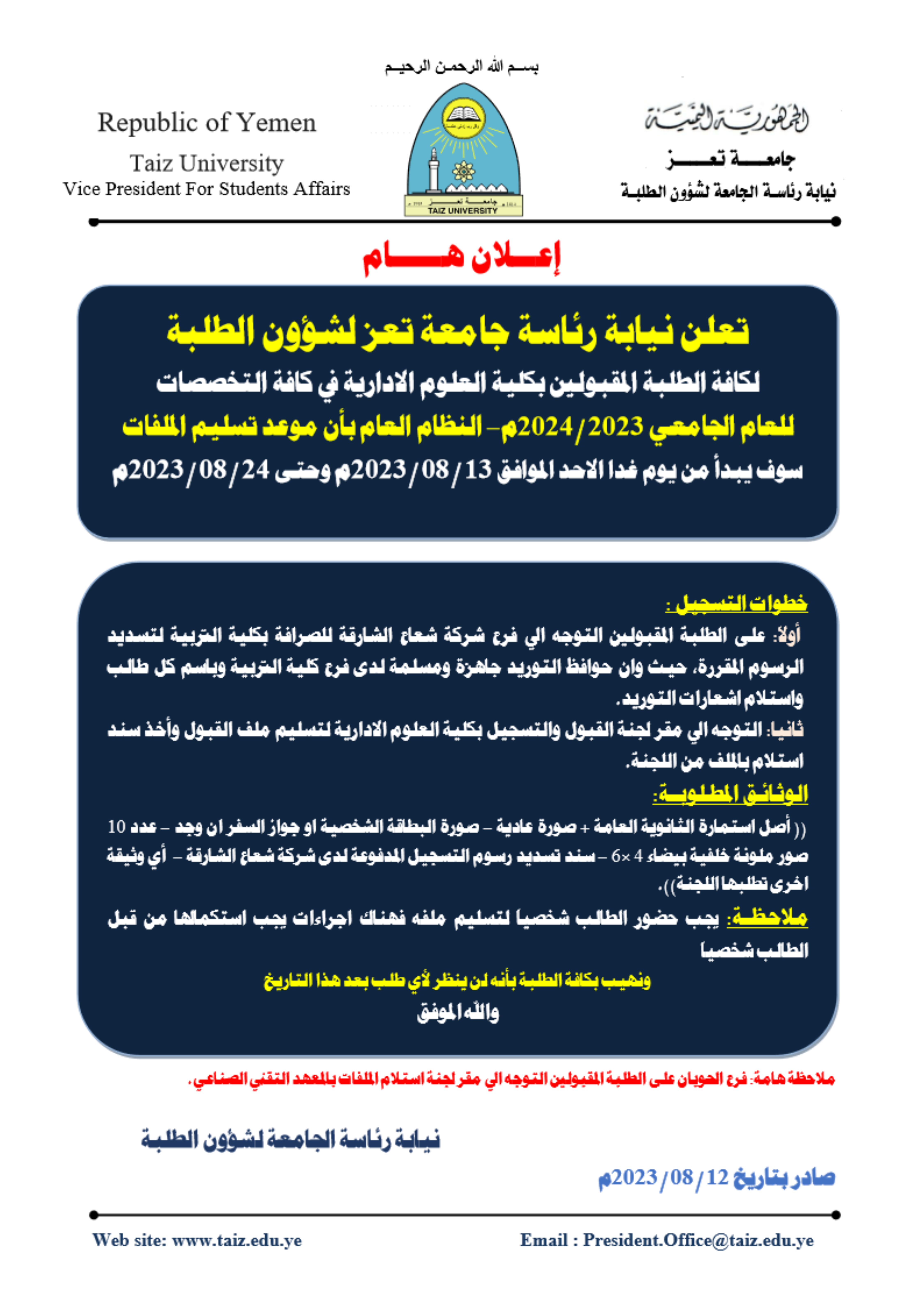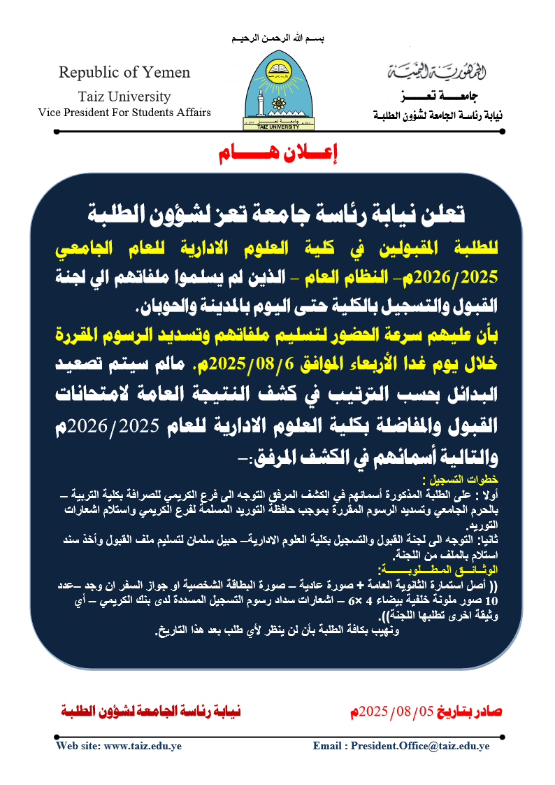 إدارة القبول والتسجيل