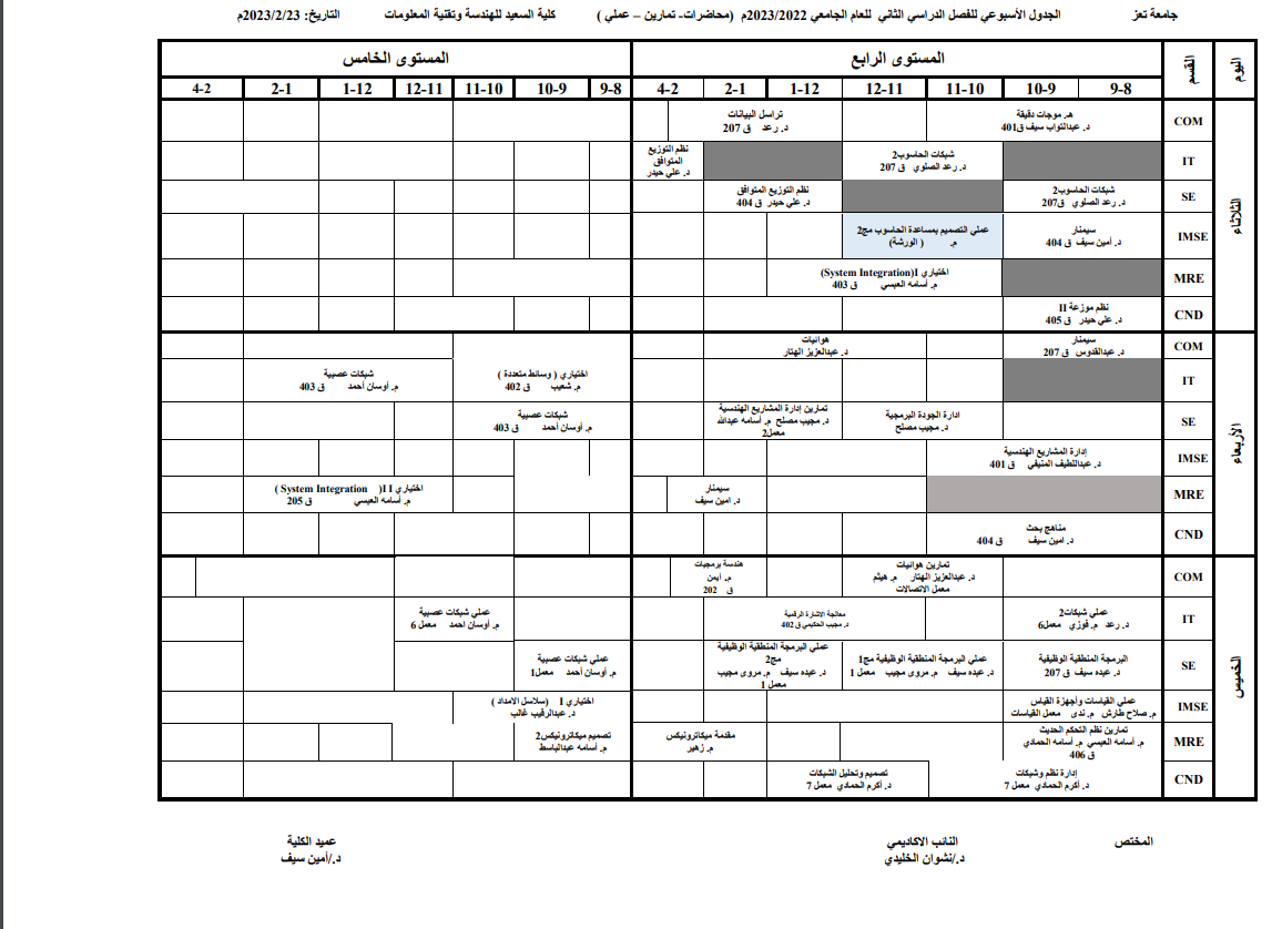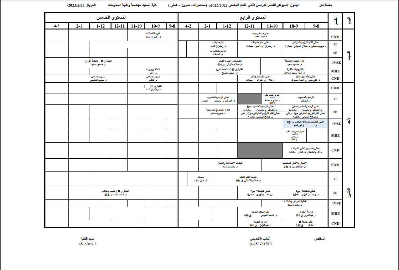 الجداول الدراسية